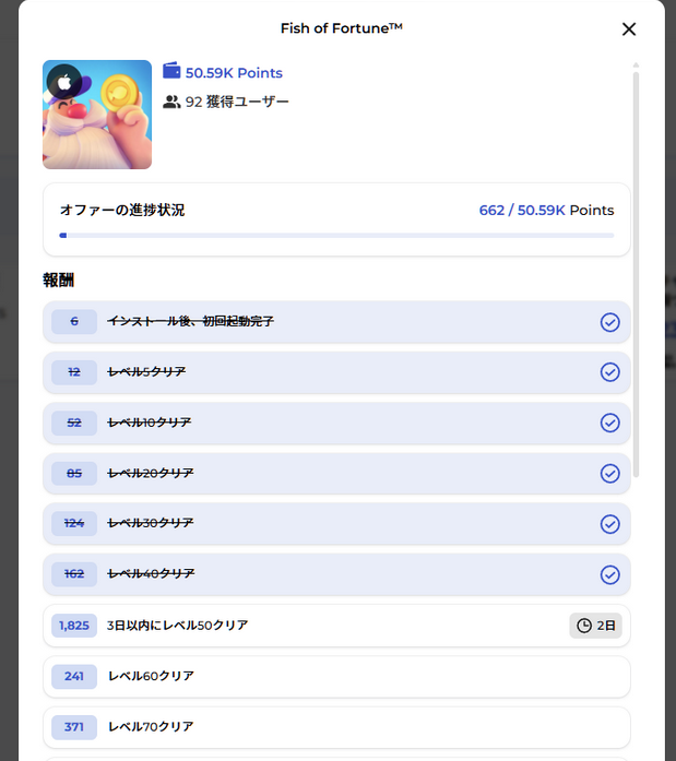 Googleが不定期に送ってくる特典が入院前から入院中にかけて溜まってたので課金したかったんだけど、もうそんなに都合良く課金できる案件なんて残ってないんだよね。そこで無理やり使えるところねえかなと思って良さそうな案件探してたら、Trustpilotで評価1.2を付けられてるクソオファーウォールPriem EarnにFish of Fortuneが高額であったんだ。ハイリスク? 知りませんね。釣られてみます。釣りするゲームだけに。
