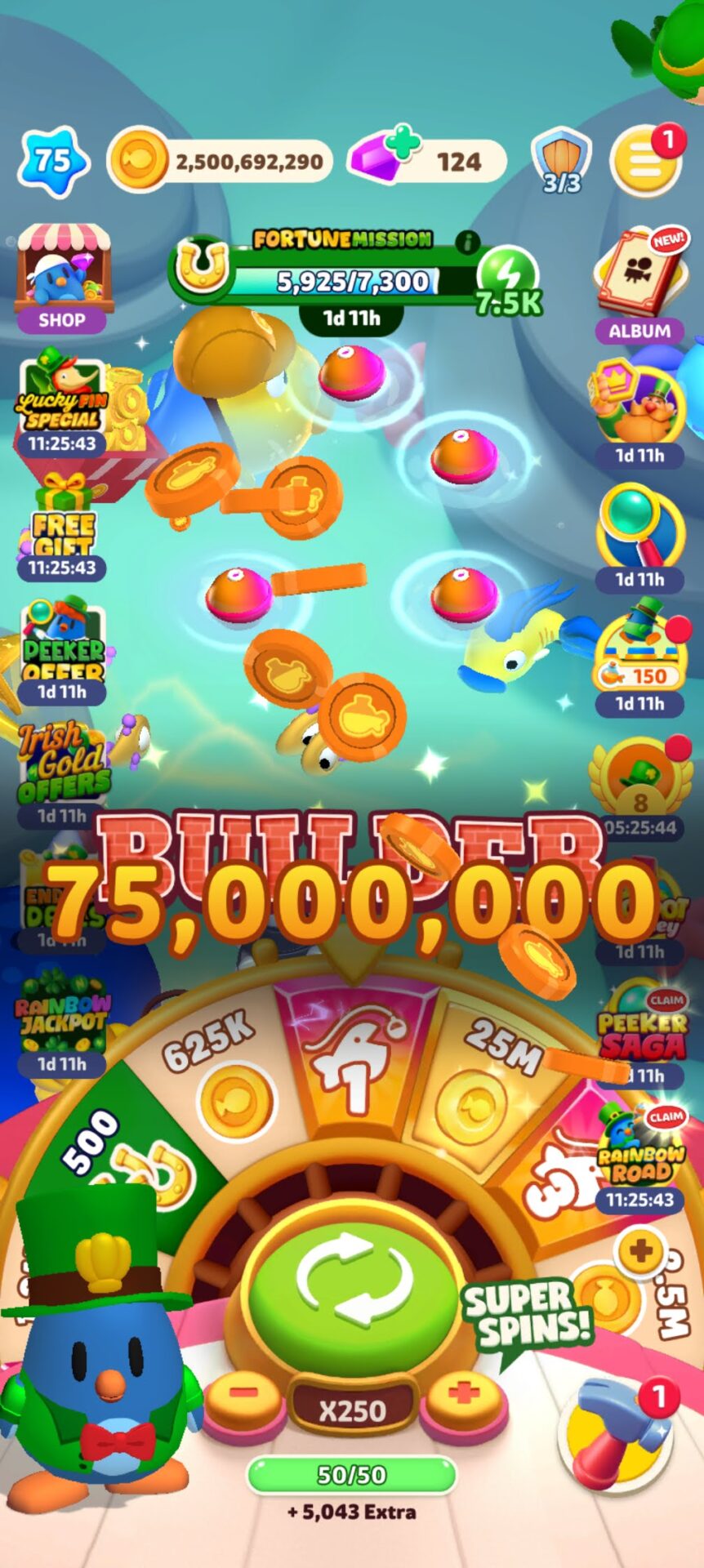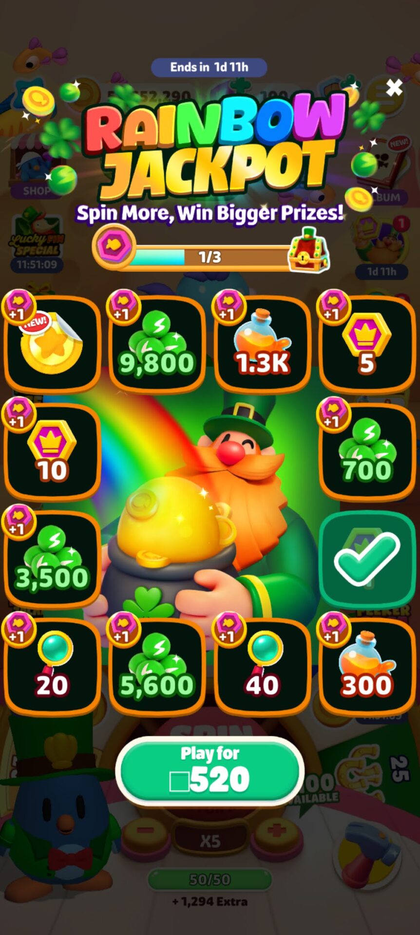 さてまず肝心のゲームのほうですが、ゲームはCoin MasterとかMONOPOLY GO!と似たような感じの釣りバージョンになります。問題はバランスが相当渋いことです。課金してスピン数を無理やり手に入れてそれをできるだけ消耗しないようにしないとすぐスピン数がなくなります。やることは至って簡単で、課金アイテムやイベントと相談しながらただ回すだけなのですが、どこまで報酬取り切れそうかとか相当センスが必要になるので、類似ゲームを経験したことがないと難しいです。スピン数が足りなくて報酬に届かなかったりすると追加で課金するかそこでおしまいみたいなことになります。