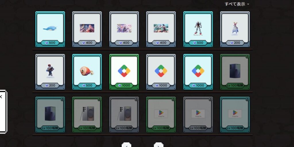 おなじみのGoogle Play ポイントやGoogle Play ギフトコードをはじめ、スマートフォンやフィギュア、ぬいぐるみなど景品の種類も多く豪華でした。記事執筆時点では景品交換画面からアクセスできるアンケートはエラー画面が出て表示されません。また、Google Play JPの公式Xではおなじみのシェアキャンペーンも開催されています。