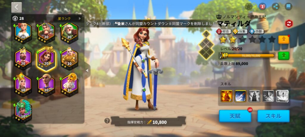 微妙に戦力150万まで足りないので、レベル高い指揮官をリセットしてまんべんなくレベル上げてスキルの彫像も割り振って指揮官の戦力を底上げして無理やり到達させます。リセット無料なので、こうやったほうが伸びます。