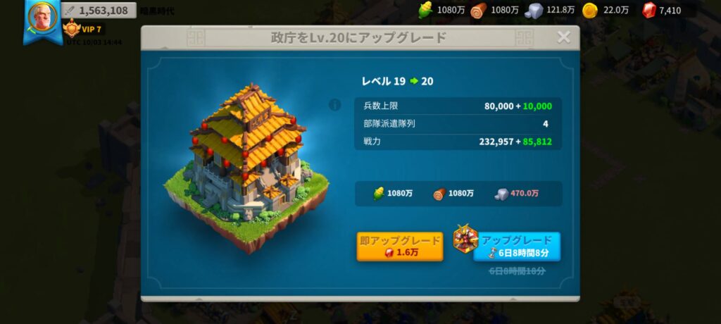 部隊を4部隊にするために政庁レベルをマッハで17まで上げるぜ